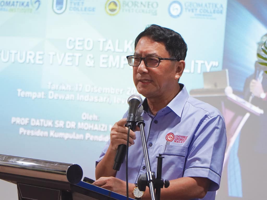 17 Disember 2024 – Geomatika TVET College telah menganjurkan Program Bicara CEO bertemakan “Masa Depan TVET & Kebolehpasaran”, yang disampaikan oleh Prof. Datuk Sr. Dr. Mohaizi Mohamad, Presiden Kumpulan Pendidikan Geomatika.